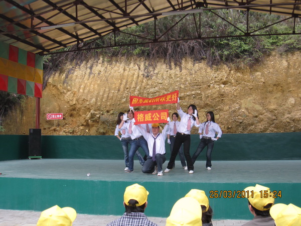 2011年3月27日,我司組織了2010年度優(yōu)秀員工和QC小組成員到江門恩平泉林山莊進(jìn)行了頒獎(jiǎng)兼聯(lián)誼活動(dòng),上午我們進(jìn)行了CS野戰(zhàn)、大腳八等拓展活動(dòng),下午是我們2010年度優(yōu)秀員工、質(zhì)量先進(jìn)個(gè)人、優(yōu)秀班組和優(yōu)秀班組長(zhǎng)的頒獎(jiǎng)活動(dòng),上年度共涌現(xiàn)出23名優(yōu)秀員工,13名質(zhì)量先進(jìn)個(gè)人,3個(gè)優(yōu)秀班組和優(yōu)秀班組長(zhǎng),他們用優(yōu)異的表現(xiàn)獲得了公司的肯定,公司給予他們物質(zhì)和精神上的獎(jiǎng)勵(lì)。頒獎(jiǎng)過(guò)程中穿插中公司自己組織的文娛活動(dòng),活動(dòng)形式豐富多彩,有合唱、對(duì)唱、游戲、廣告、小品、舞蹈等,雖然我們只有短短一周時(shí)間的準(zhǔn)備時(shí)間,但是他們都很努力去排練,節(jié)目演出效果還不錯(cuò),公司領(lǐng)導(dǎo)也積極參與到節(jié)目中。