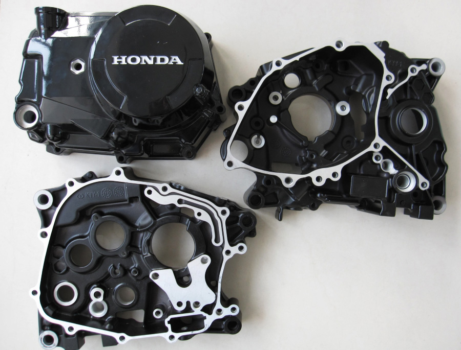 五羊-本田KPH系列摩托車發(fā)動機(jī)左右箱體、左右邊蓋,此系列的摩托車是目前該公司彎梁車的代表車型。